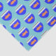 This awesome tissue paper features a fun orange Christmas goldfish wearing a festive santa hat. The goldfish is swimming in the blue water of its goldfish bowl. The fish has decorated the top of the bowl with red and green bunting flags that spell out the message "Merry Fishmas". This fun seasonal fish is ready for a big Christmas party.