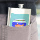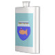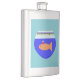 This awesome flask features a fun orange Christmas goldfish wearing a festive santa hat. The goldfish is swimming in the blue water of its goldfish bowl. The fish has decorated the top of the bowl with red and green bunting flags that spell out the message "Merry Fishmas". This fun seasonal fish is ready for a big Christmas party.