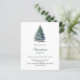 A winter invitations for a Christmas party. A white background on the front decorated with a watercolored hand-drawn pine tree with snow. Personalise and add your party details.