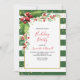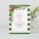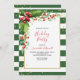 We love this Christmas Party Invitation. It features faux gold lettering with festive holly over a green striped background. Perfect for inviting guests to your house this holiday season.