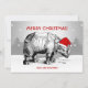 Christmas Party Invitation Rhino Santa Hat Funny Design, Vintage Christmas Rhino Santa Hat Albrecht Durer Funny Design, funny cool remake of Durer Rhinoceros Woodcut wearing Santa Red Hat. Perfect for Christmas Party Or New Year Eve Party, Or As A Birthday Gift, or for people want to save chubby unicorn