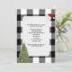 Holiday Party invite with Santa Claus hat and snowman on white and black buffalo plaid background