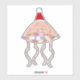 This awesome sticker features a sparkly jellyfish lit up like Christmas lights. The top of the bell is glittery and the underside looks like flashing lights, even the tentacles are bright and colourful. The Jellyfish is wearing a red and white Santa hat and is ready for a jelly Christmas.