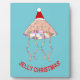 This awesome plaque features a sparkly jellyfish lit up like Christmas lights. The top of the bell is glittery and the underside looks like flashing lights, even the tentacles are bright and colourful. The Jellyfish is wearing a red and white Santa hat and is ready for a jelly Christmas.