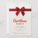 CHRISTMAS PARTY modern elegant red ribbon bow Holiday Card
