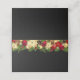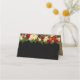 This folded name place card is shown in Black and Gold with a festive Christmas poinsettia garland.