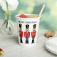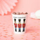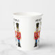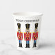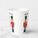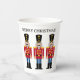Christmas party paper cups with nutcracker drawing. Fun toy soldier Holiday design with custom text on front and back. Great for warm and cold drinks.