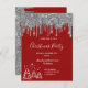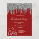Christmas party red glitter silver invitation postcard