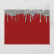 Classic red background, with faux silver glitter drips and white winter Christmas trees as decor. With the text: Christmas Party written with modern and trendy large hand lettered style script. Personalise and add your party information.