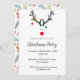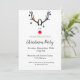 A cute, funny, modern, minimalist and abstract reindeer head. White background. A party invitation perfect for a Christmas party with friends, family or coworkers. Templates for date, place, RSVP details. Dark grey coloured letters.
