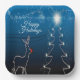 Christmas Party Reindeer Tree Blue Sky Shiny Stars Paper Plate