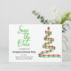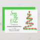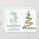 You can make the party announcement and remind guests to save the date all in one design. This features a contemporary red and green Christmas tree on the right with details on the left.