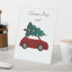CHRISTMAS PARTY SIGN WITH CAR DESIGN IN RED AND CHRISTMAS TREE