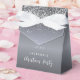 A faux silver looking background with faux silver glitter, a bit of bling and luxury for your Christmas favours. With the text: Christmas Party written with a modern hand lettered style script. Personalise and add Your family name and a year, white letters. Modern, simple and elegant.