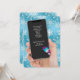 Christmas party invite on cell phone text message on white snowflakes with snowman and aqua background.