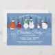This rustic Christmas Party invitation features a snowmen families skating together on a blue background of pine trees and falling snow. Personalise with all of your holiday party details. Designed by artists ©Tim Coffey and Susan Coffey.