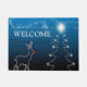 Christmas Party Tree Blue Sky Shiny Stars Rustic Doormat