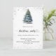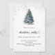 A winter invitations for a Christmas party. A white background on the front decorated with a watercolored hand-drawn pine tree with snow and faux sparkling glitter. Personalise and add your party details.
