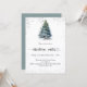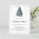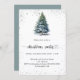 A winter invitations for a Christmas party. A white background on the front decorated with a watercolored hand-drawn pine tree with snow and faux sparkling glitter. Personalise and add your party details.