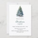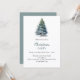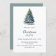 A winter invitations for a Christmas party. A white background on the front decorated with a watercolored hand-drawn pine tree with snow. Personalise and add your party details.