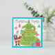 Modern with a touch of retro, this Christmas Party Invitation features an bright green tree for your party info, Santa and Christmas gifts. Bright and colourful ornaments hang from the words "Christmas Party". A hip invitation for your holiday party. Hand drawn illustration by McBooboo.