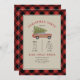 Christmas Party Wood Wagon Car Tree Plaid Invitation