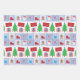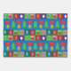 Christmas Pattern Blue Beige and Colourful Wrapping Paper Sheet