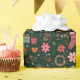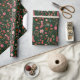 A lovely christmas pattern design for wrapping paper featuring wrapped presents, christmas stockings and winter floral flowers on a dark green background. A lovely design to wrap all your xmas gifts for the holiday season.