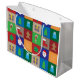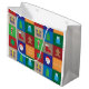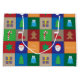 A large gift bag designed with some Christmas symbols on a colourful background. Merry Christmas!