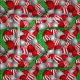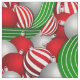 Festive Christmas pattern made of ornaments as red and striped balls and a green striped ribbon. Get into the holiday season with this jolly pattern!