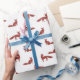 Christmas Pattern Of Red Foxes On White Wrapping Paper