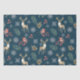 Christmas Pattern With Deer & Bullfinches Blue Tissue Paper