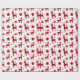 Wrapping paper with an illustrated pattern, red silhouettes with adult and young reindeer, with golden stars in the background, perfect wrapping supply for your Christmas holiday season