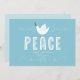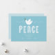 This non-photo holiday card features an illustration of a dove over the word peace on a light blue background. It has space for a greeting, your name, and the year.