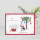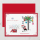 Whimsical dog with a Santa hat and scarf sitting under a palm tree with ornament cards. Box with multilingual merry christmas happy holiday wishes. Unique holiday cards for everyone. You can Personalise the card by clicking the "Customise it" button and replace the text with your own. Find more matching items at the ingeinc.com store.