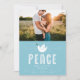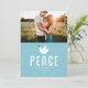 This single photo holiday card features space for a photo at the top. Beneath the photo is an illustration of a dove over the word peace. It also has space for a greeting, your name, and the year.