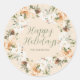 Christmas Peach Floral Pine Wreath Name Classic Round Sticker