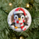 Christmas Penguin Bursting Out Ceramic Ornament
