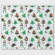 Christmas penguin skiing wrapping paper