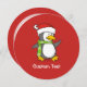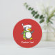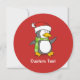 A little penguin cartoon with santa hat and green scarf walking on snow.