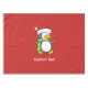 A little penguin cartoon with santa hat and green scarf walking on snow.
