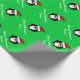 Christmas penguin wrapping paper | Personalizable. Funny penguin cartoon with Santa Claus hat and personalised Xmas greeting. Merry Christmas! Cute gift wrap design for kids and adults. Green or custom background colour.