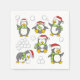 Seamless cute and happy little penguins cartoon background wearing santa hats and scarfs and playing with snowballs.