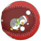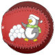 Cute and happy little penguin cartoon icons wearing santa hats and scarfs and playing with snowballs.