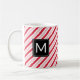 Celebrate the sweetness of the holiday season with this peppermint candy cane pattern mug. The modern design features red and white stripes with a white monogram letter in a black square frame. Makes a great customised Christmas gift. Fill with candy, cocoa mix or other goodies for an extra treat!
