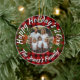 Christmas personalized photo red plaid pinecones ceramic ornament