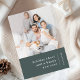Share warm wishes with this stylish modern vertical photo card featuring the classic quote “Holiday Cheer and a Happy New Year” in elegant white typography with a clean dividing line and vertical text direction. The design, set in a rich dark forest green, captures the calm sophistication of Scandinavian minimalism. Perfectly balanced between modern and timeless, this layout highlights your photo beautifully while keeping a clean, contemporary feel. Personalise easily with your own greeting, family name, and picture to make it truly yours. The sample image shown is for illustration purposes only and can be replaced with your own photo. A chic, minimalist design that brings modern Scandi elegance to your Christmas greetings.