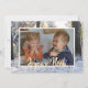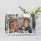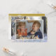 Christmas Photo Card Joyeux Noël with pretty snowy tree background. Feel free to switch the background picture if you like. Also upload your favourite holiday family picture. The back is gold with white snowflakes with your own personalised holiday season message.