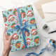 Christmas Photo Collage Festive Funny Face Blue Wrapping Paper