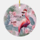 Christmas Photo Flamingo Santa Hat Tropical Ceramic Ornament